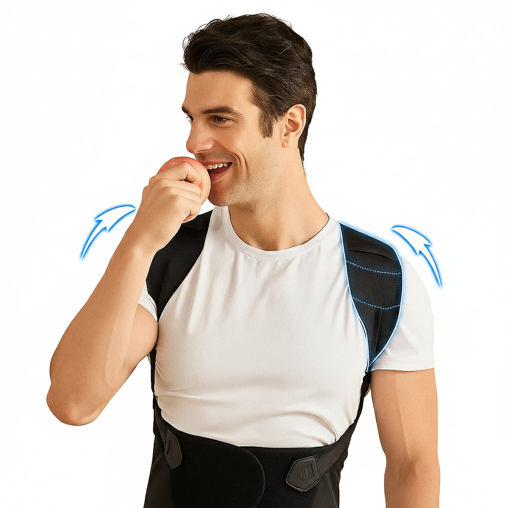 Améliorez votre posture en toute discrétion Confortable, réglable et respirant, le Pro Elite ErgoFlex™ soutient votre dos et vos épaules pour un alignement naturel. Invisible sous les vêtements, il vous accompagne au quotidien en toute confiance.