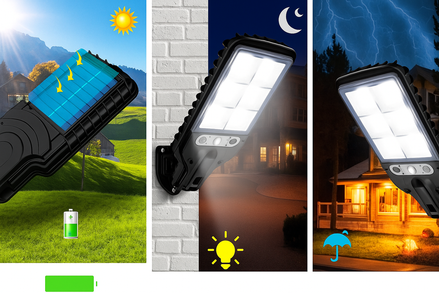 Fabriqué en ABS durable et résistant à l’eau, PowerLight™ peut affronter pluie, humidité et soleil intense. Idéal pour les jardins, façades ou garages — la durabilité est garantie.