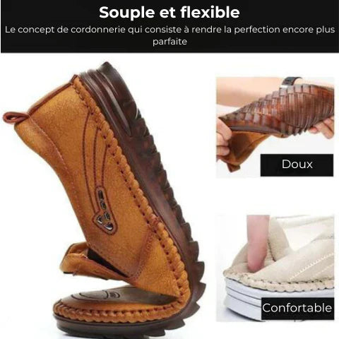 Découvrez des mocassins qui combinent parfaitement confort et style. Grâce à leur cuir souple de haute qualité, ces mocassins s’adaptent à chaque mouvement tout en offrant une douceur incomparable. Leur semelle flexible et antidérapante garantit un confort optimal tout au long de la journée.