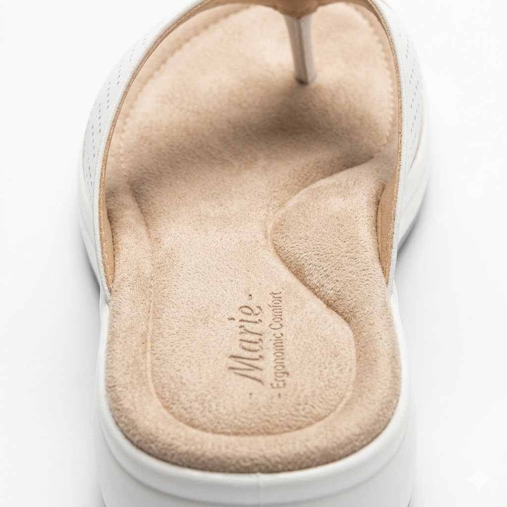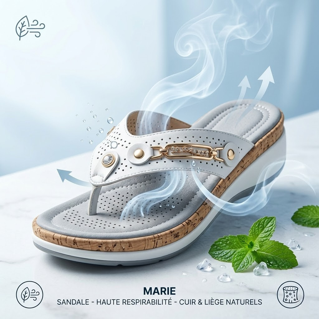 Offrez à vos pieds le soutien qu'ils méritent. Les sandales Marie intègrent une semelle intérieure orthopédique préformée qui épouse parfaitement la voûte plantaire. Cette technologie permet un alignement naturel du corps et une répartition uniforme du poids, réduisant la fatigue et les tensions musculaires. Marchez plus longtemps et avec plus d'aisance, tout en profitant d'un confort durable.